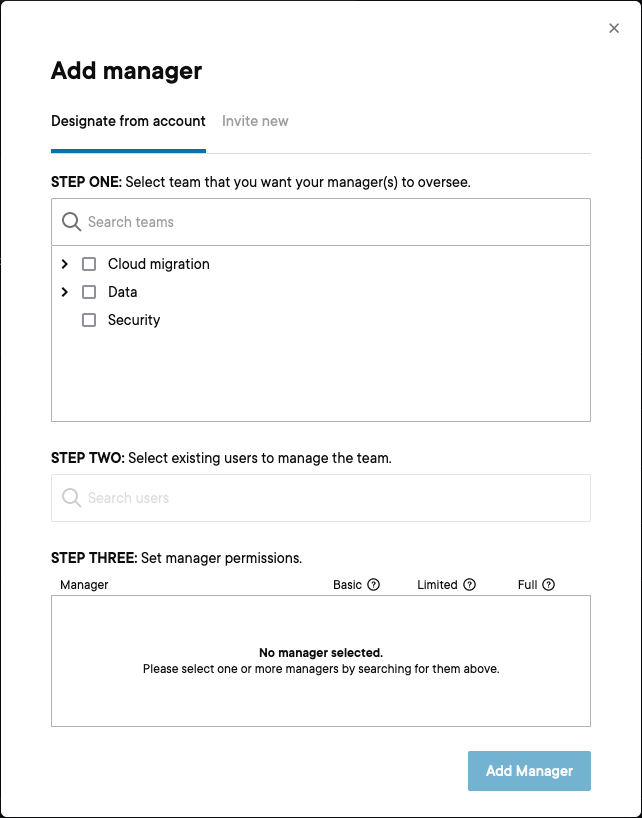 The Add manager modal has been streamlined to make it faster for you to add new team managers to the platform. And now you can—right in the platform—set customized manager permission levels while adding new managers. You can access the new modal by clicking Add new manager on the Managers tab of the People page (opens in new tab).