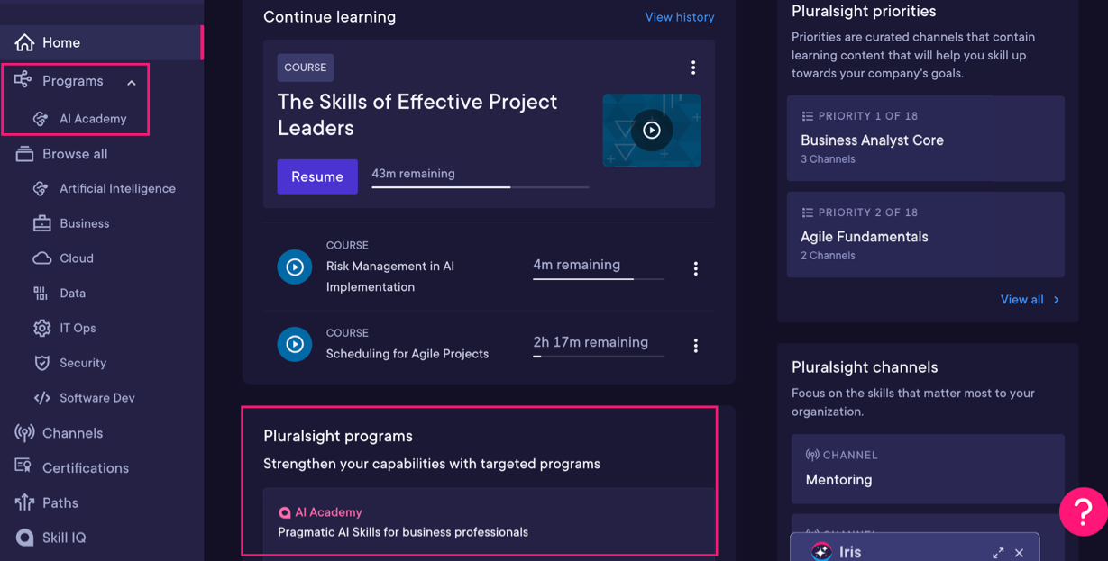 Solution packages are available for purchase exclusively from the Pluralsight Sales team. If you’re interested in exploring one or more solution packages for your organization, contact Pluralsight Sales (opens email form).